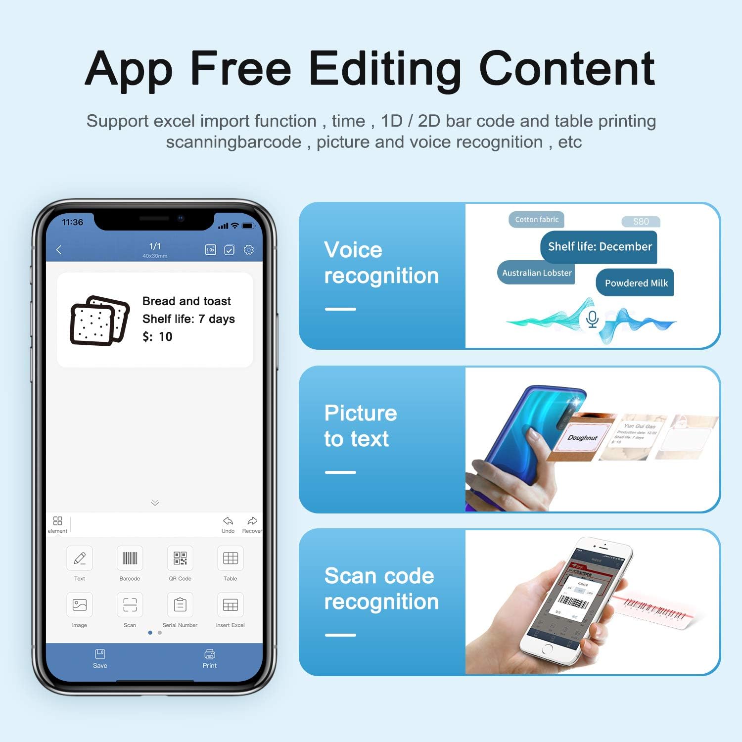 La aplicación gratuita de NIIMBOT tiene funciones como escaneo, reconocimiento de imágenes, impresión por lotes, número de serie, se ofrecen más de 20 fuentes, más de 1000 iconos, se proporcionan más de 1000 bordes para diseños de etiquetas personalizadas.