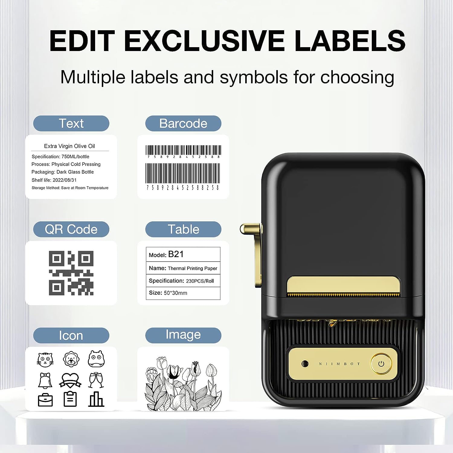 La etiquetadora Bluetooth NIIMBOT B21 puede identificar automáticamente el papel de etiqueta. 4 horas de tiempo de trabajo continuo después de 1,5 horas de carga.